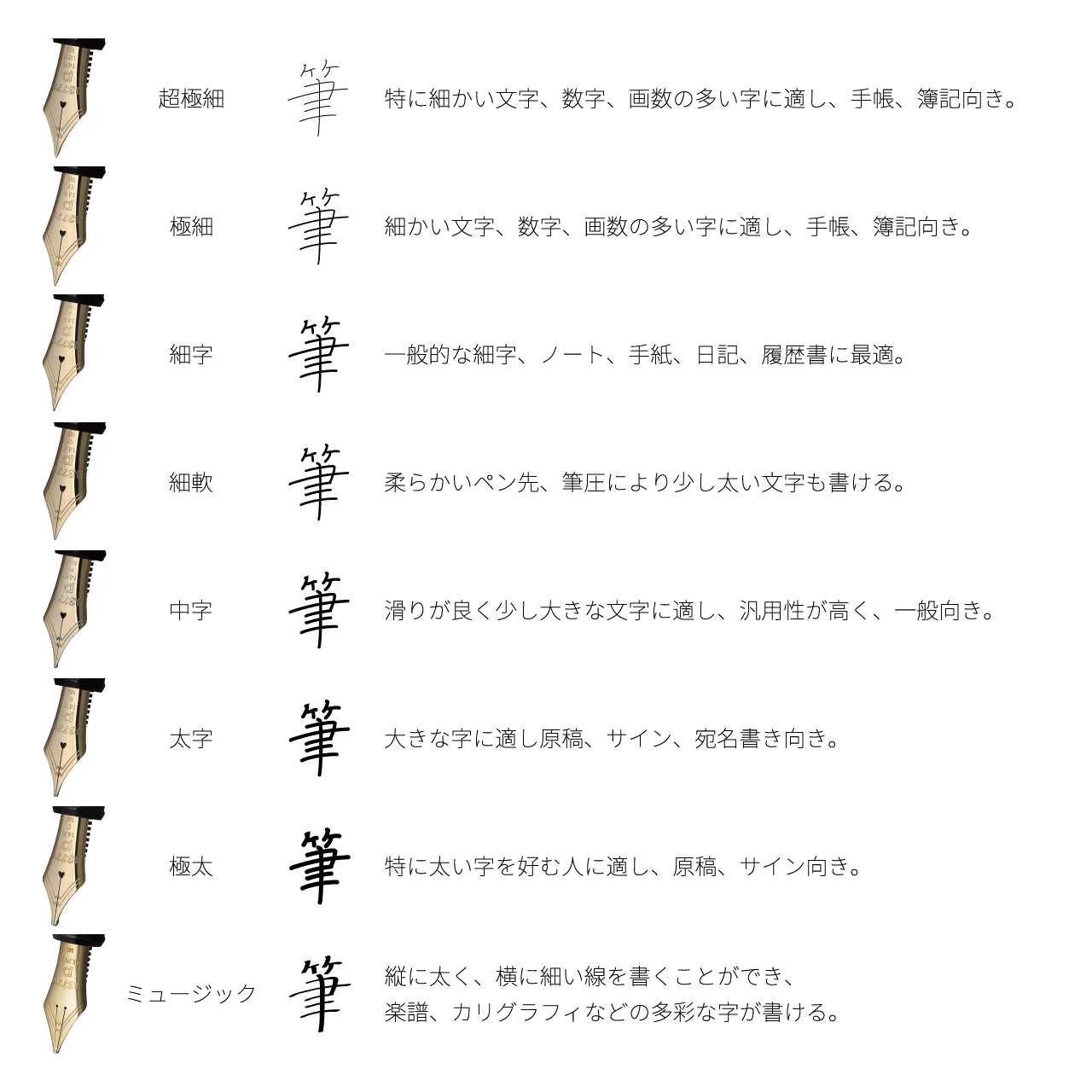 ペンポイントの種類