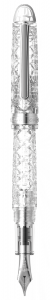 The transparent body, which was initially developed to explain the internal mechanism of the pen, is now gaining the idea of enjoy the color of the ink in the pen. By applying an intricate cutting on the transparent body, “ROKKA” fountain pen produces a glitter like a jewelry or crystal glass, enabling you to appreciate the expressive ink color that changes according to the refraction and reflection of light. “ROKKA” boasts a more gorgeous impression compared with other pens with transparent body, which makes it attractive for women who are the main target of this product. It is also recommended for fountain pen enthusiasts and collectors for its high rarity as only limited number of 2,500 pens are available globally, in addition to the intricate design equivalent to a craftwork realized through an elaborate mirror surface finish.