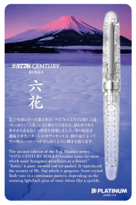 A part that resembles Mount Fuji is placed at the top of the pen, expressing the silvery, snow-capped mountain.